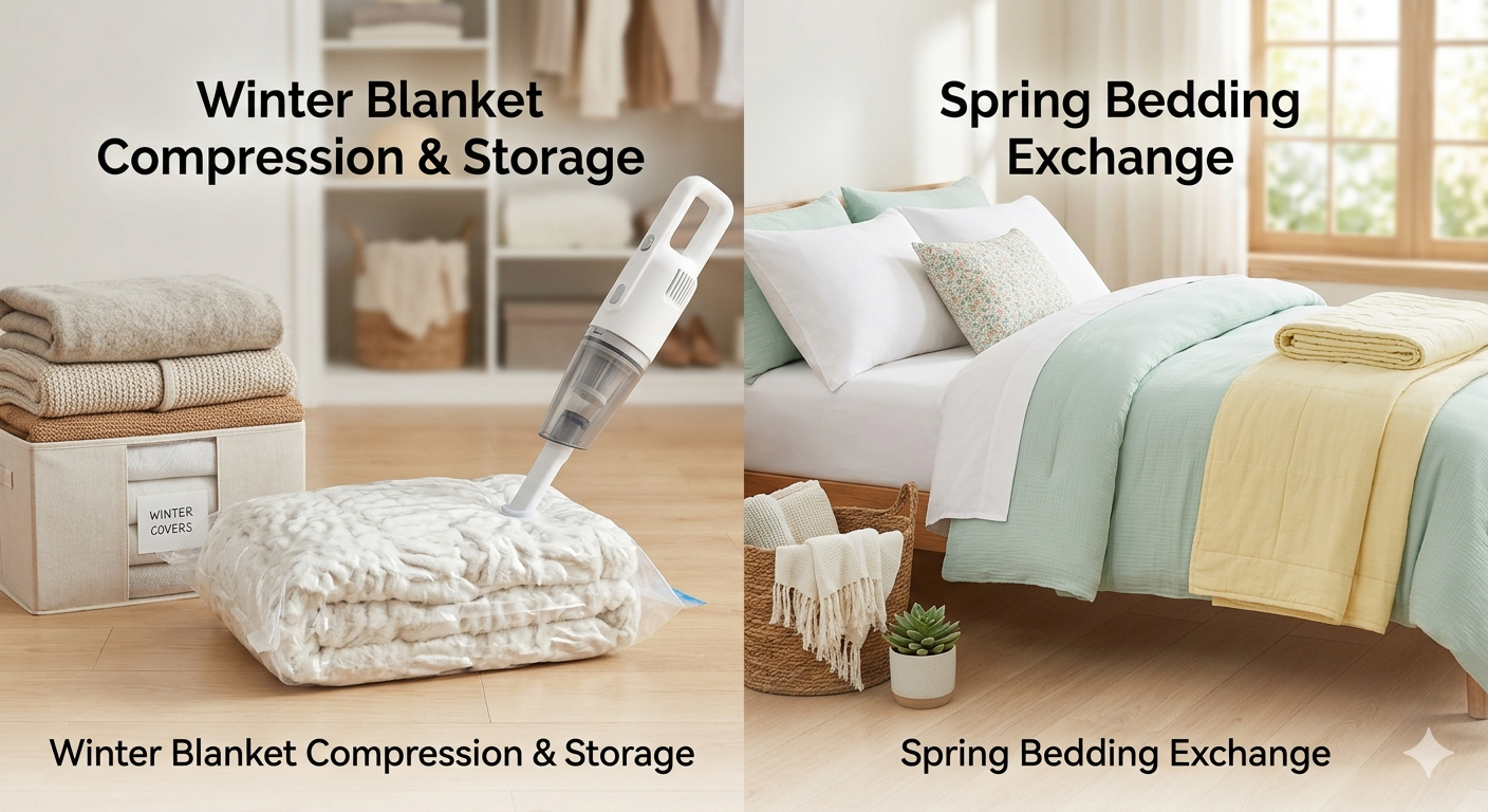 솔루션은 명확합니다. 겨울 이불은 소재에 따라 압축 강도를 조절하고, 봄 침구는 먼지 부착이 적은 소재를 선택하는 것입니다. 특히 극세사 이불은 압축해도 복원력이 좋지만, 천연 충전재는 완만한 압축이 필수라는 점을 기억하세요.
